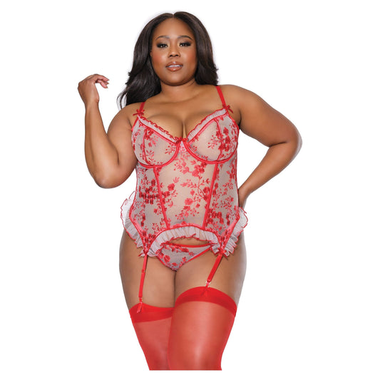 22315 - Velvet and Lace Bustier with Underwire Cups and Thong