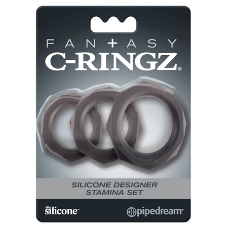 Pipedream Fantasy C-Ringz Silicone Designer Stamina 3-Piece Cockring Set Black