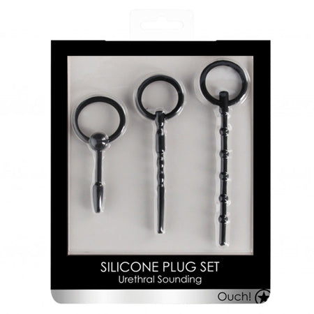 Ouch! Urethral Sounding 3-Piece Silicone Plug Set Black