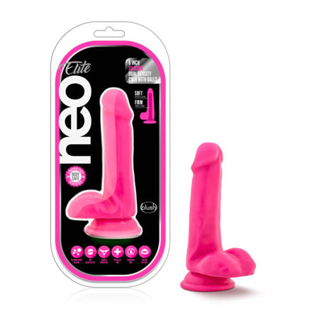 Blush Neo Elite 6 in. Silicone Dual Density Dildo with Balls & Suction Cup Neon Pink