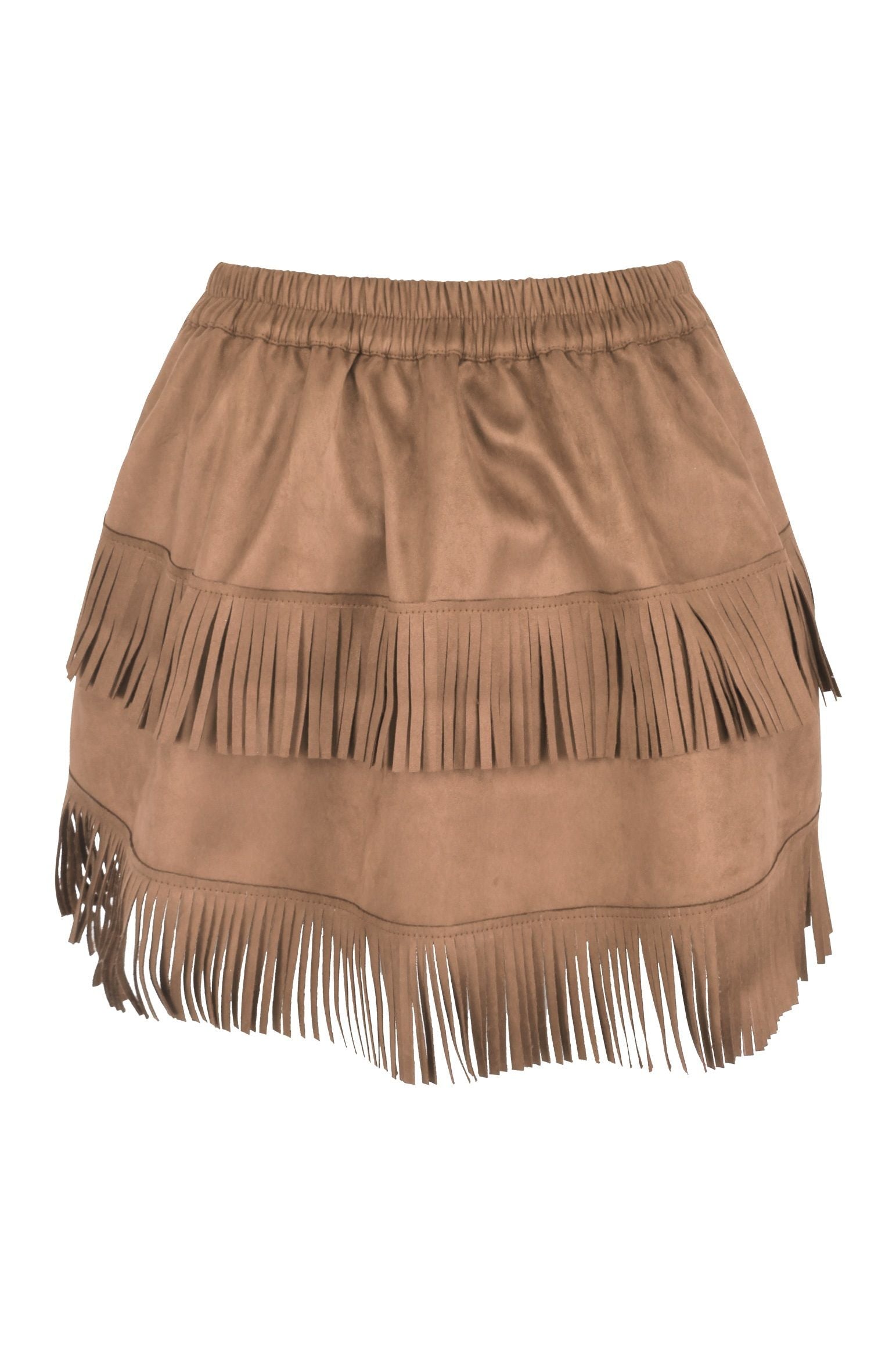 Complete 4 PC Set – Includes suede corset with privacy panel, adjustable length skirt, western cowgirl hat, and fringe gloves.